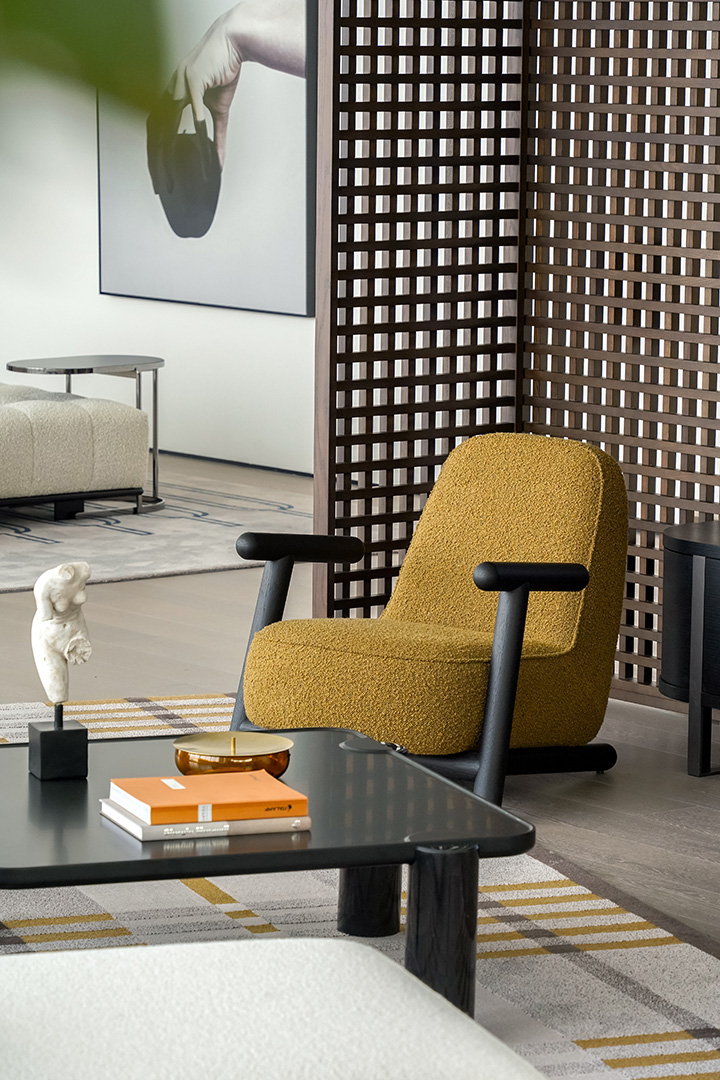 The design of our new showroom in Wenzhou is a masterful blend of contemporary with a touch of wabi-sabi styles, creating an atmosphere that is both minimalist and luxurious. From the carefully chosen sofas and coffee tables to the expressive artwork and natural lighting, every element works together to foster a warm, inviting, and beautifully detailed environment.