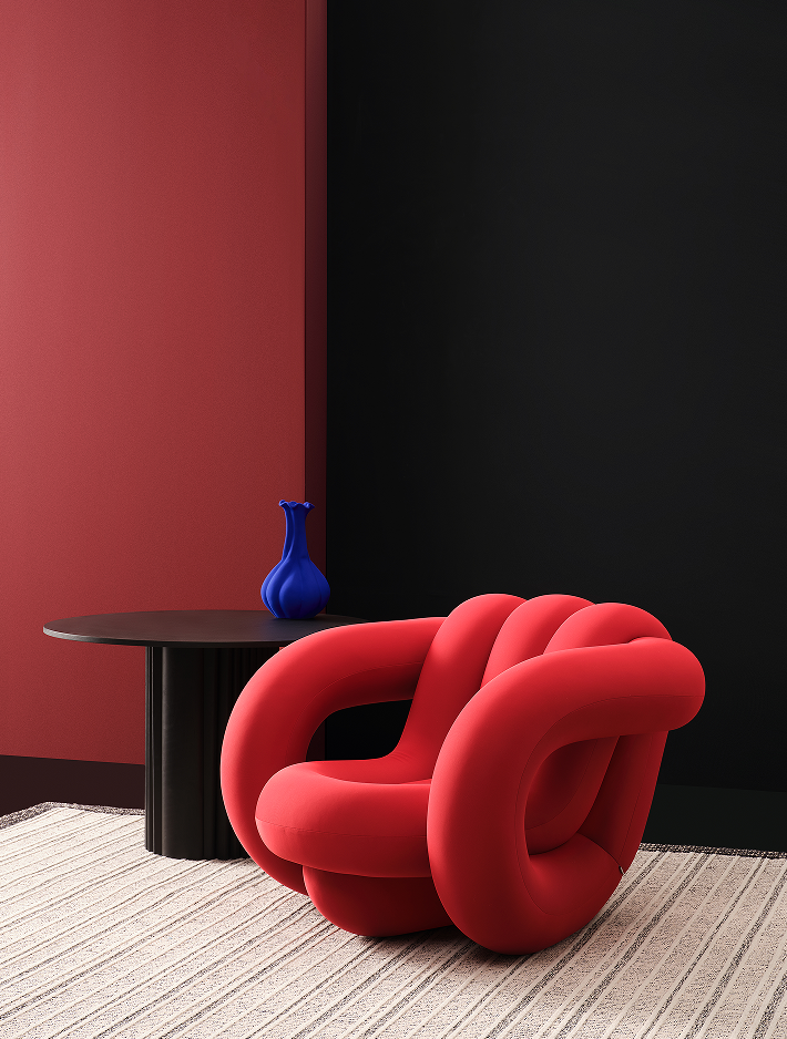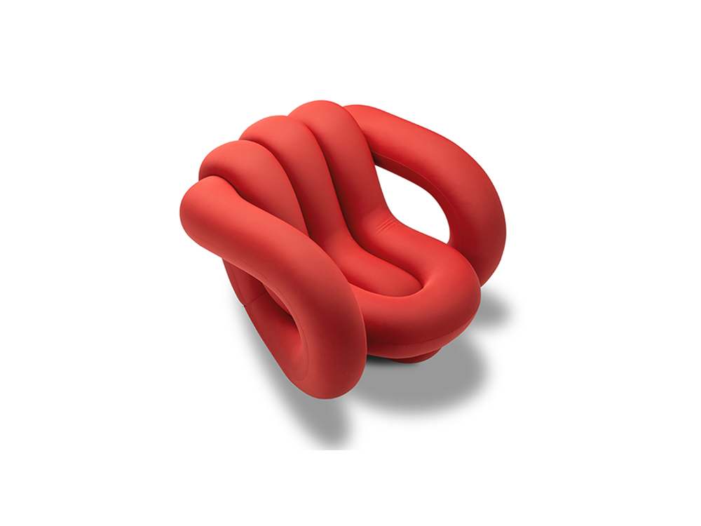 TWISTY is an innovative and revolutionary work that was inspired by AI generated image. The round tubes are twisted into a complex loop shape that is also an armchair. The endless loop represents limitless data and infinite future possibilities. HC28 COSMO shares the concept of "Man versus Machine", combining Artificial Intelligence with Artistic Intelligence to create this artwork.