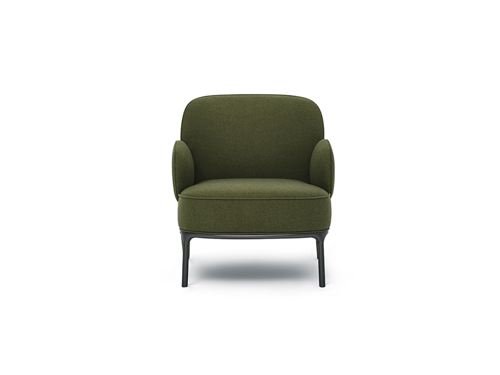 Named after the inventor Margarete Steiff from Germany who invented the Teddy bear. Designer wanted to design a cozy armchair and character by playing with softness and proportions. This armchair is a cozy hub. I fine metal base highlights a soft upholstery with its smooth shapes and an iconic and unique upholstered back leg with grows to the armrest.