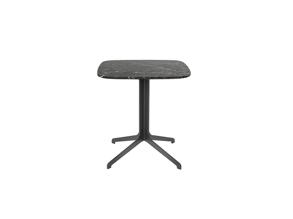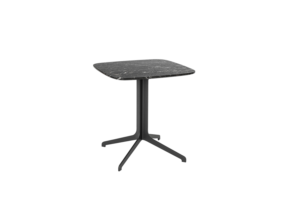 Table top in marble or wood. Metal frame in dark grey epoxy paint finish.