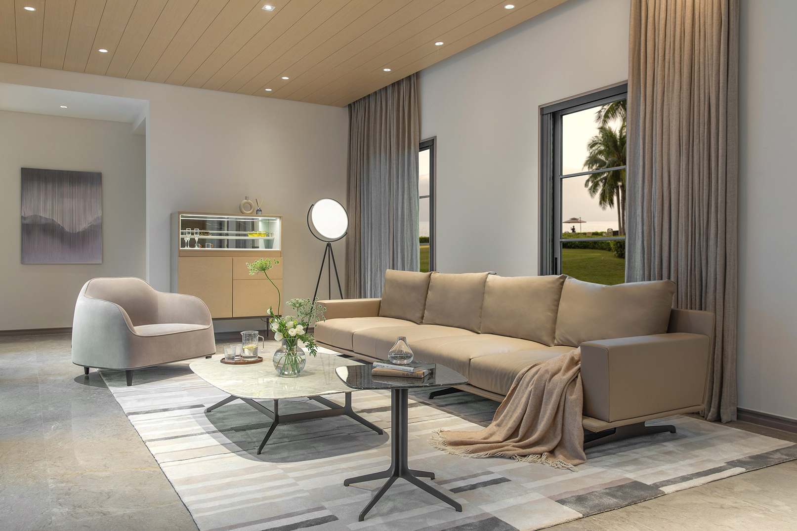 Designed on the tenets of organic and natural living, GRANTORINO Collection is rich in artistic details with a style of simplicity and toughness. The outline of the metal feet is smoothly curved. The tea table is restrained yet exquisite, available in marble and wood with different heights to fit living rooms of various sizes.