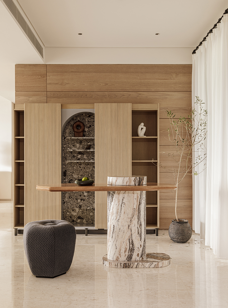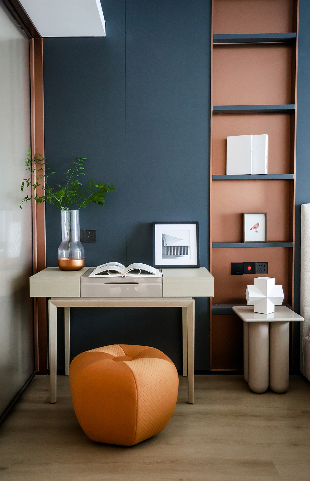 Upholstered with fabric from the Marshmallow collection. Metal feet in black satin finish.