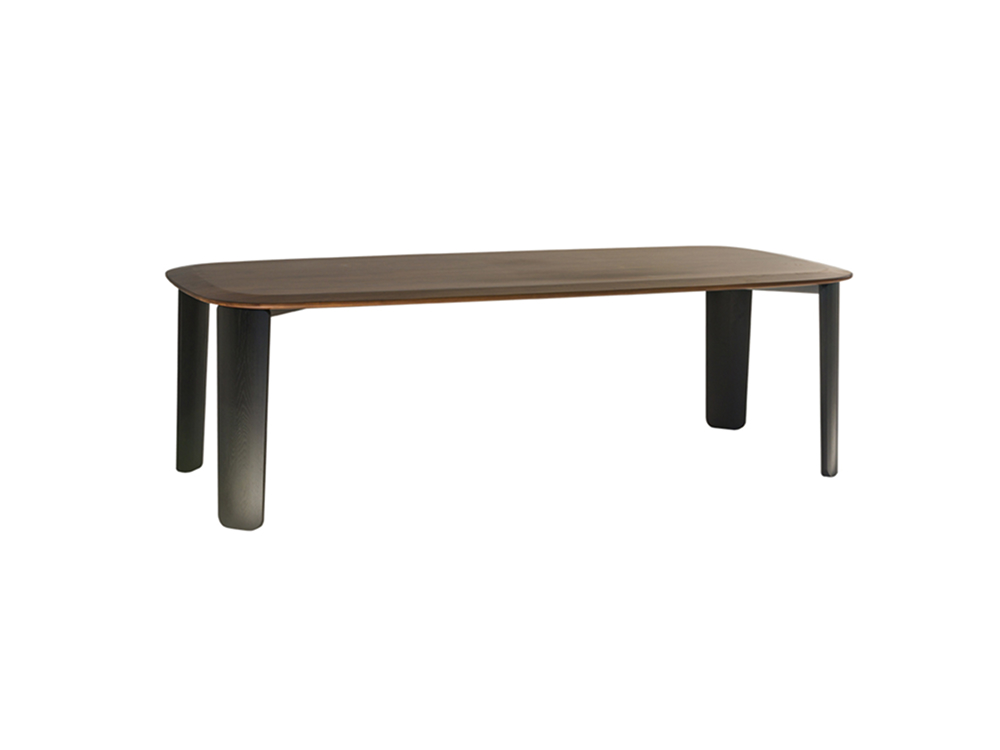 Rounded steady legs prop up FLU dining table. Natural and solid wood makes the table look like a sculpture in a fashionable and stable style.