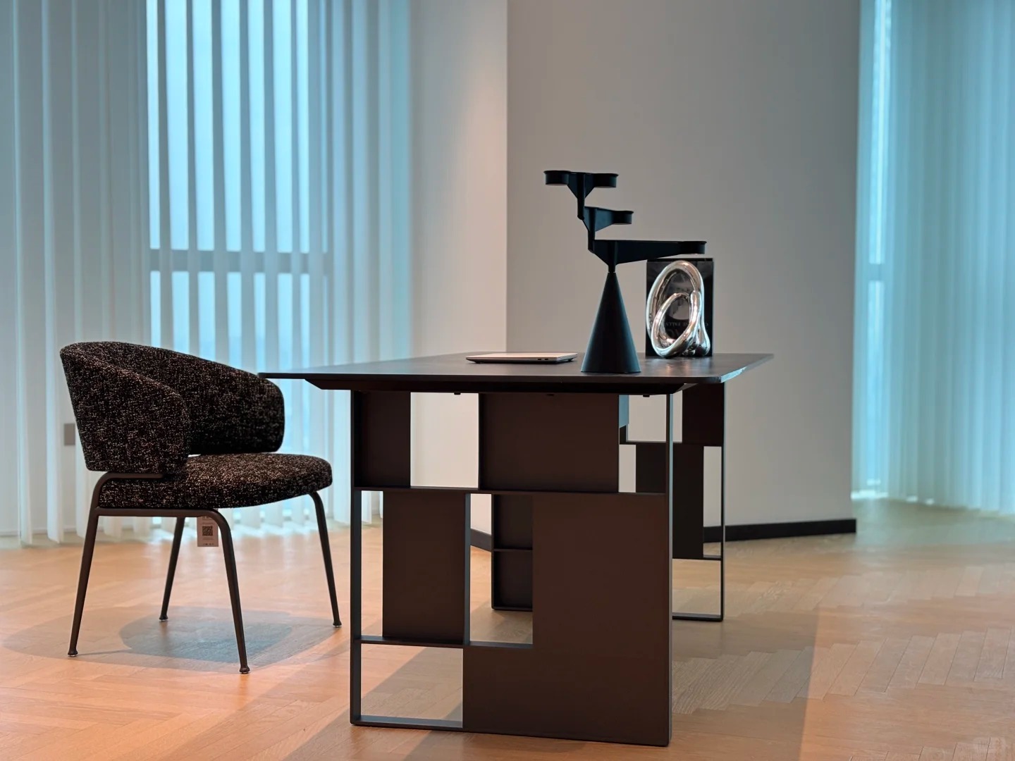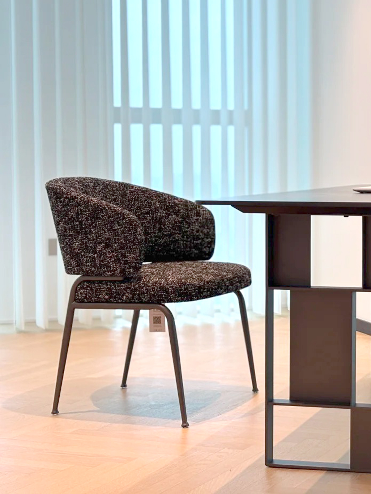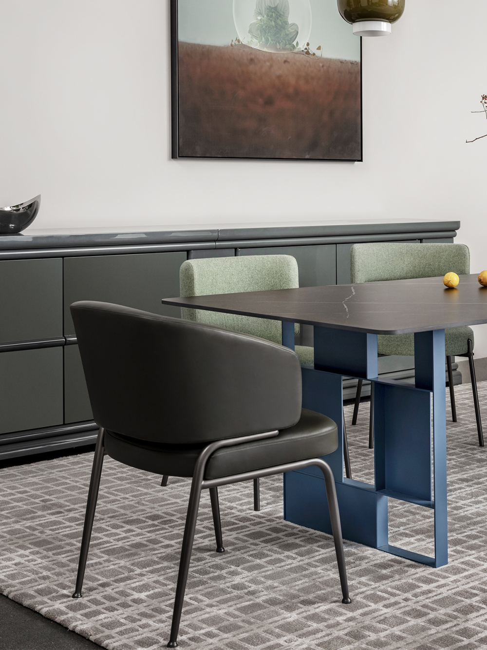 Upholstered with fabric or leather. Metal legs in dark grey epoxy paint finish.?SEAT HEIGHT: 460MM