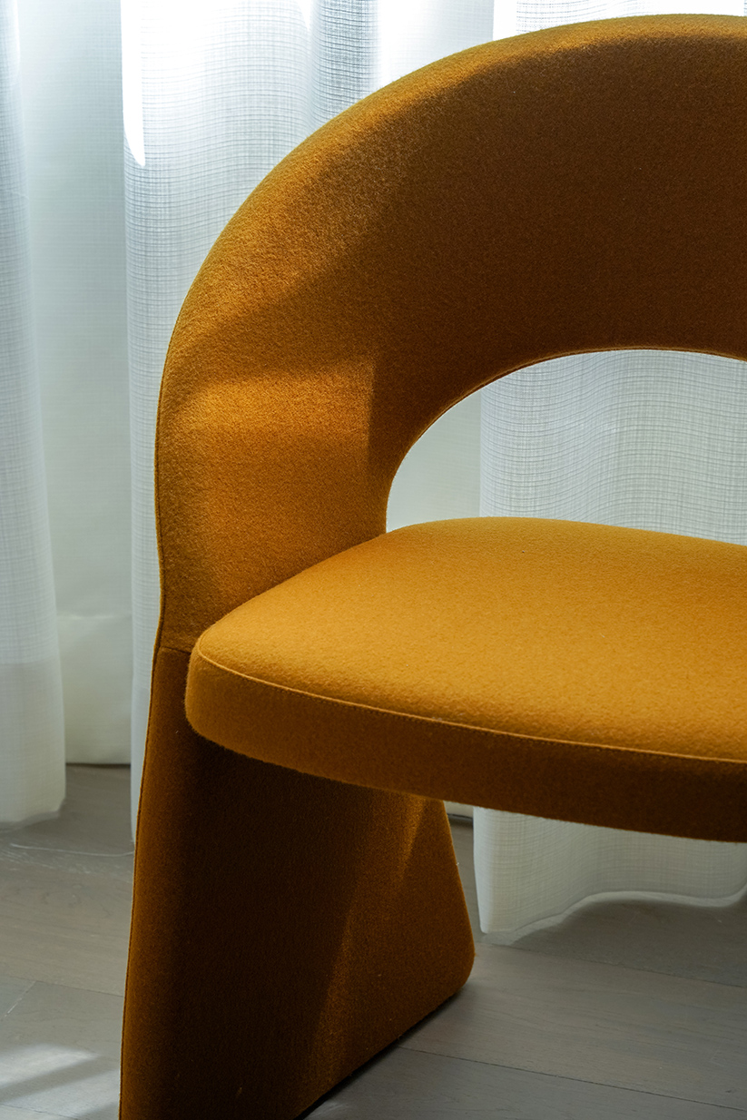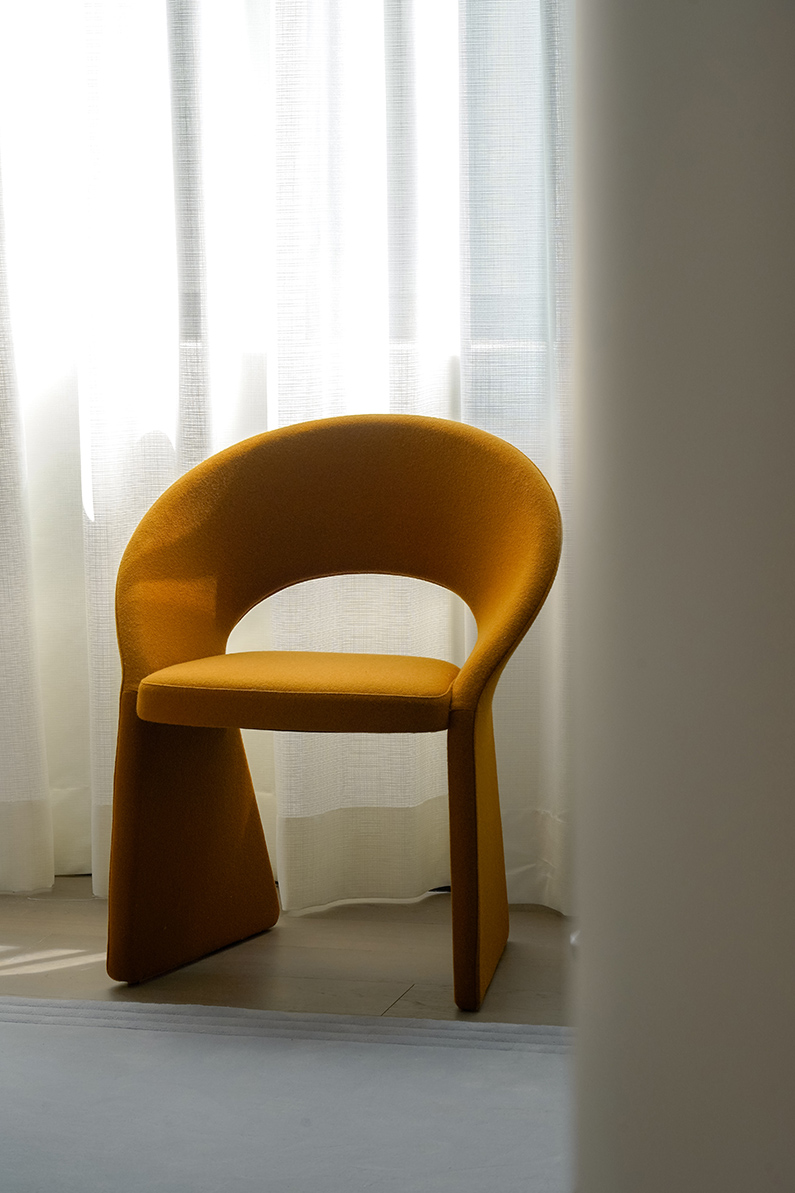 The WRAP collection is characterized by a refined and elegant design. It is inspired by the 'wrap dress' of the 1970s, a model wrap dress that became an iconic garment, a symbol of modernity and femininity. Like the 'wrap dress', this collection wraps in an elegant and timeless style. A continuous, clean line unites legs and back with a soft, sinuous curve. An eye-catching design that becomes racy thanks to iconic proportions that alternate straight and curved lines.
