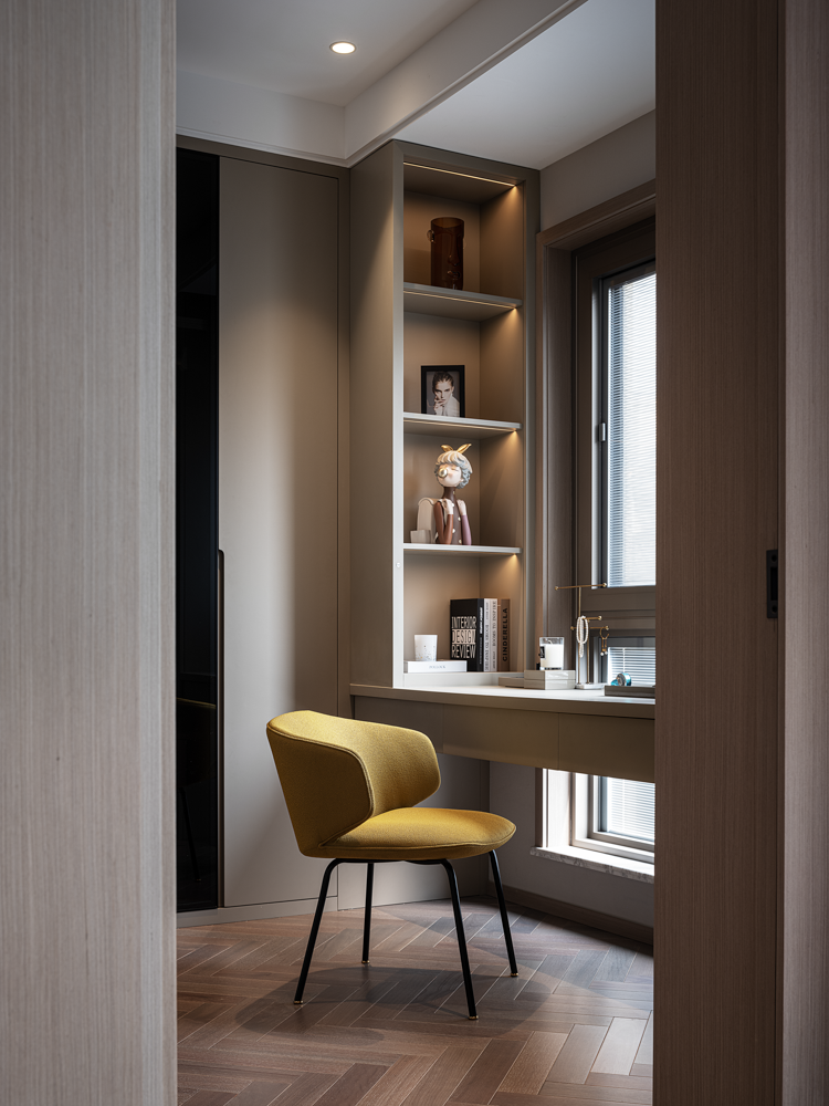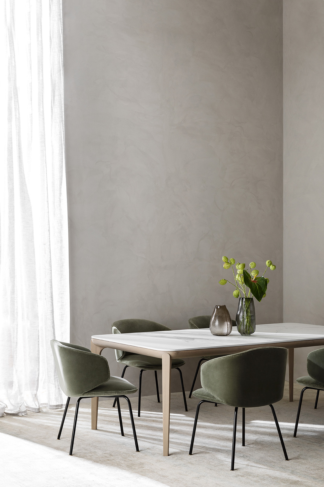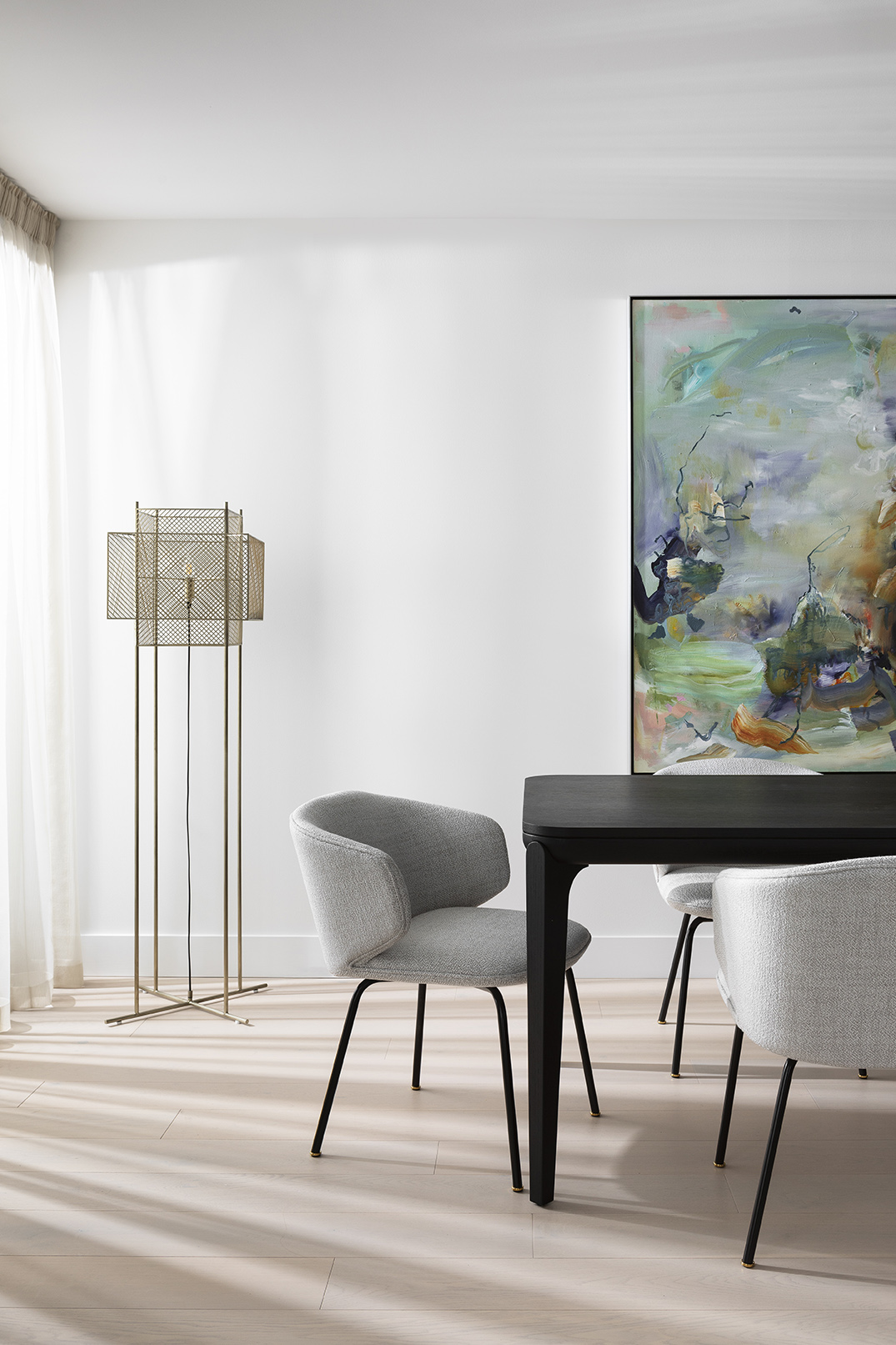 Upholstered with fabric or leather. Metal Legs in black satin finish, feet in champagne gold titanium plating. SEAT HEIGHT: 450MM