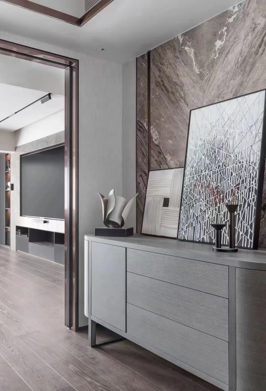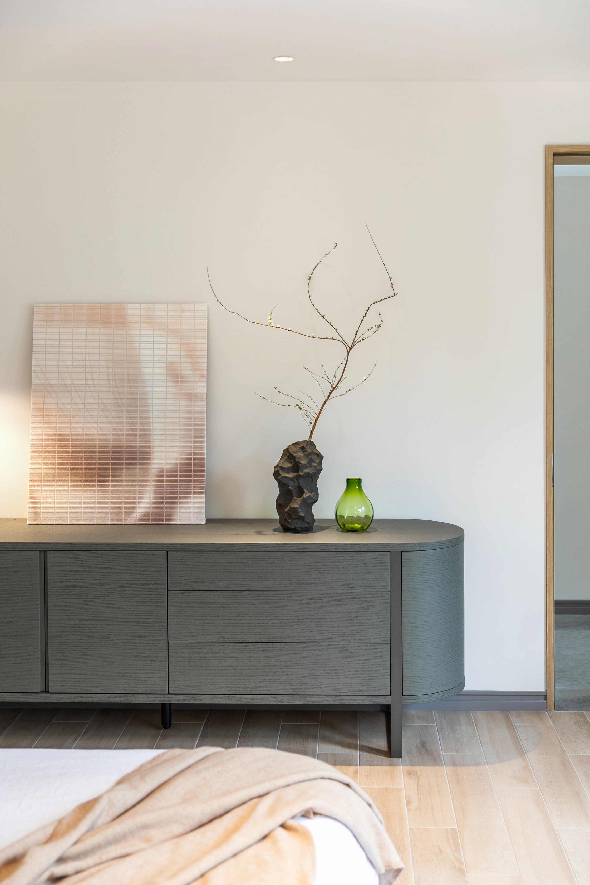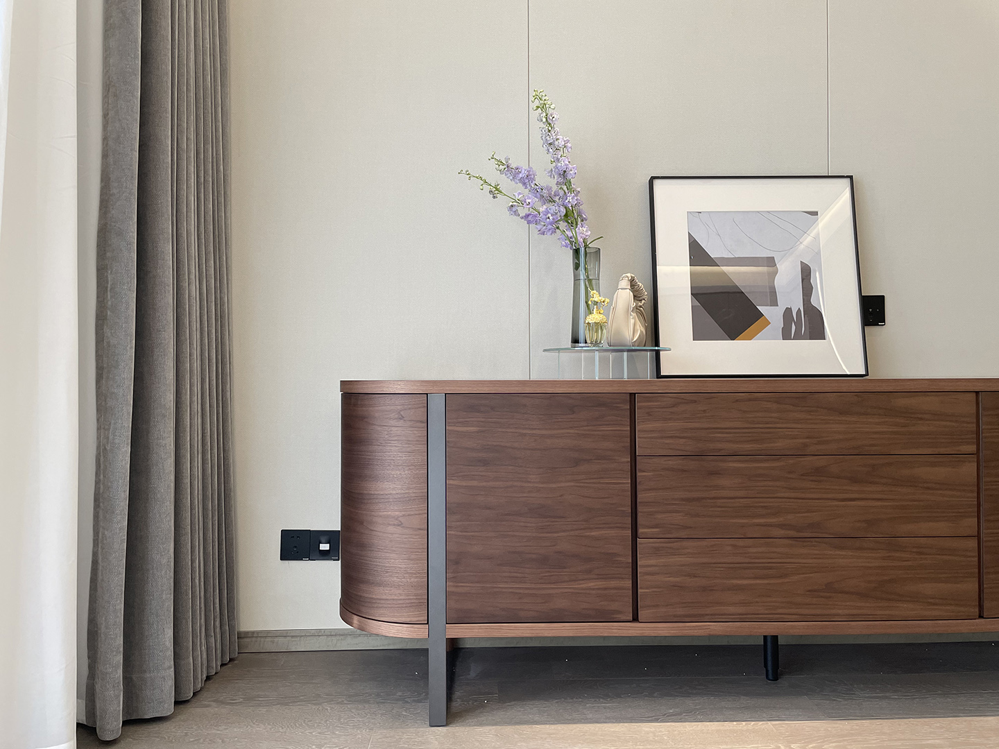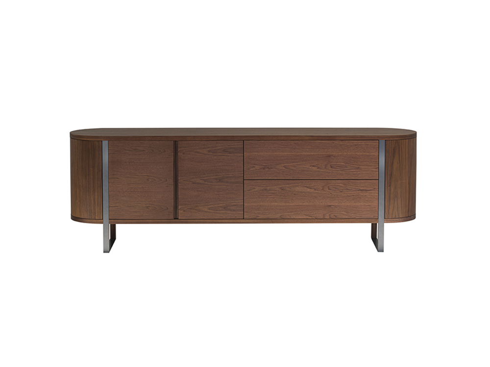 PLEGAT sideboard inherits the design concept of the collection. Natural material coexists with functions. Wood texture is delicate and elegant. Composite wooden columns stand on metal frame to show beauty and elegance of the cabinet.