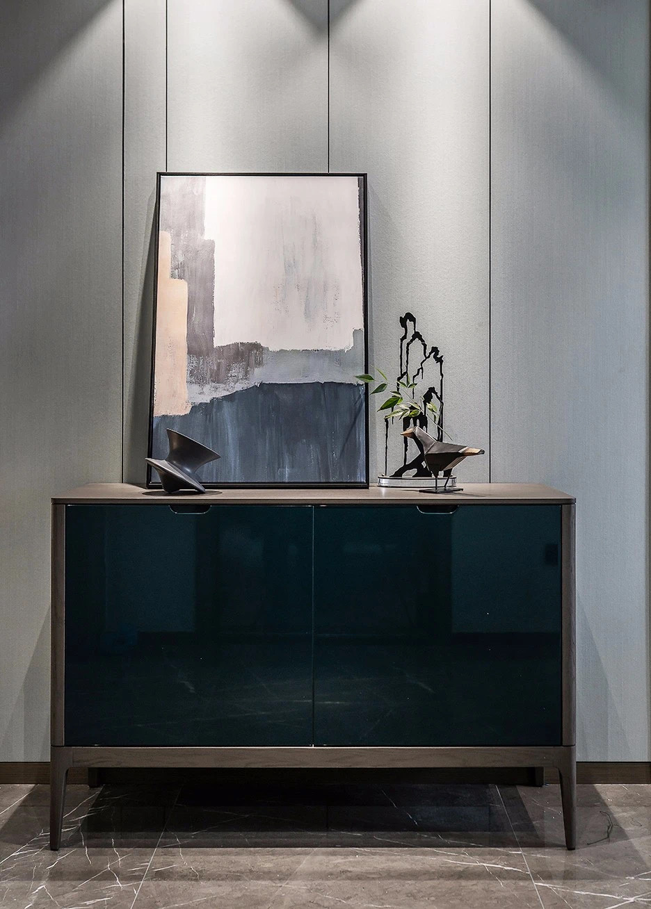 Credenza made in wood with door front in colored lacquer finish.