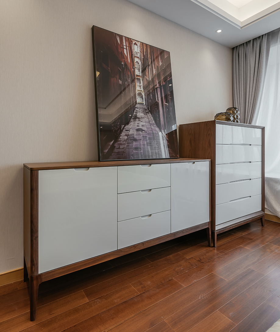 EARL sideboard, paired with EARL dining tables and chairs, is attractive from both a design and a craftsmanship point of view. It is the subtle combination of lacquered and varnished wood, rounded corners and slim structure, all of which are distinctive signs of elegant design.