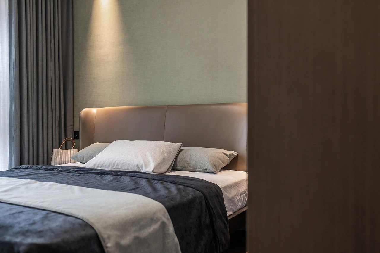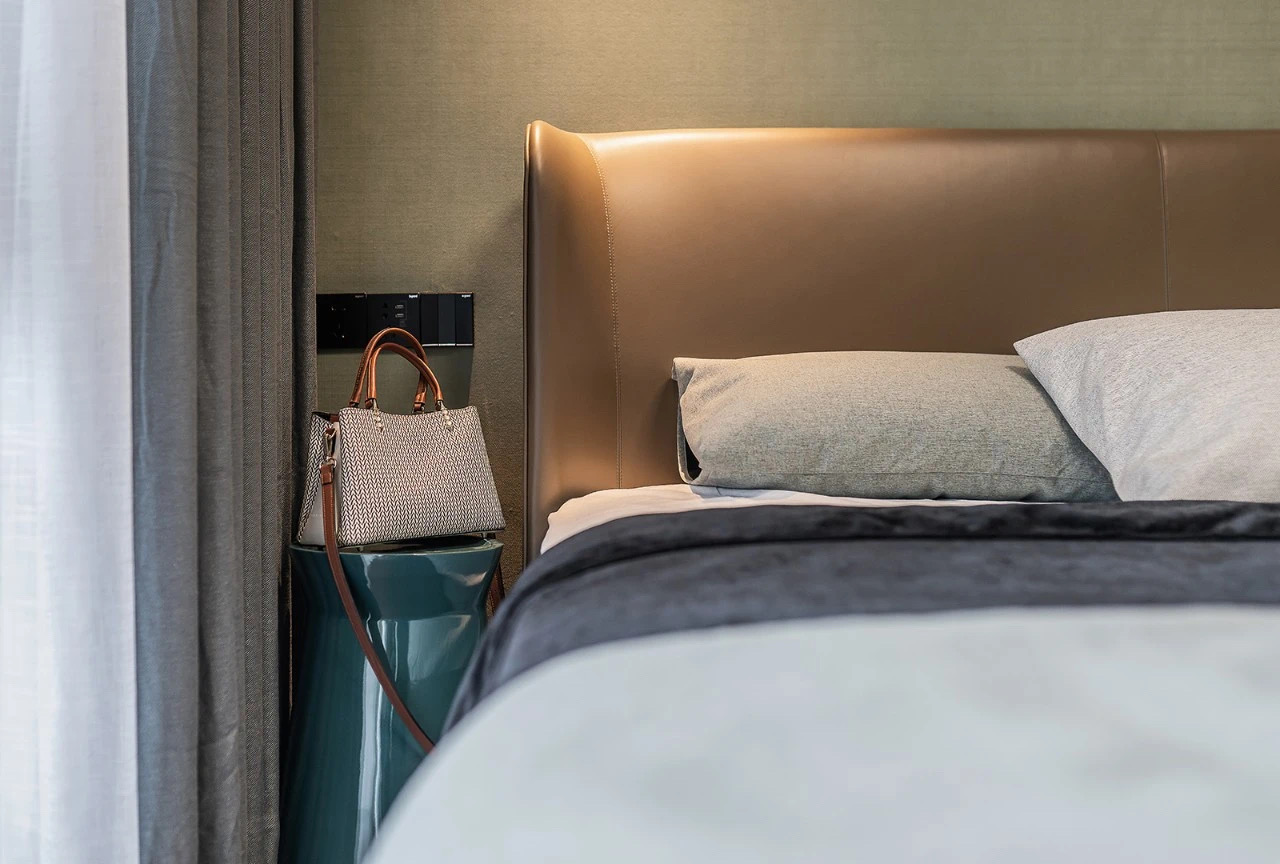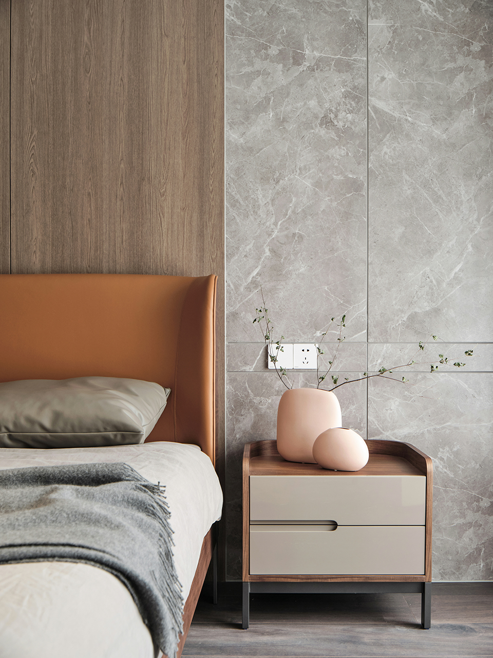 NEW EMMA bed features elegant and sculptural lines well suited to modern interiors; the sleek headboard is sophisticated and comfortable with the collection‘s signature of walnut or oak back. Available in multiple fabrics or leathers for a sense of timeless luxury.