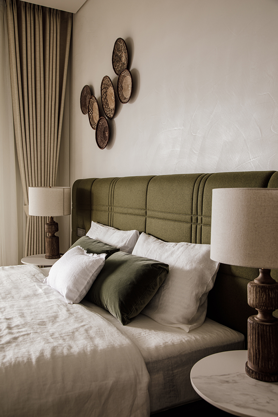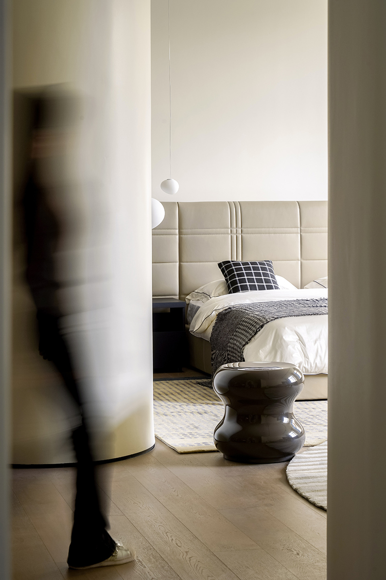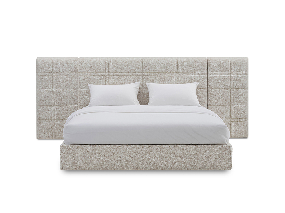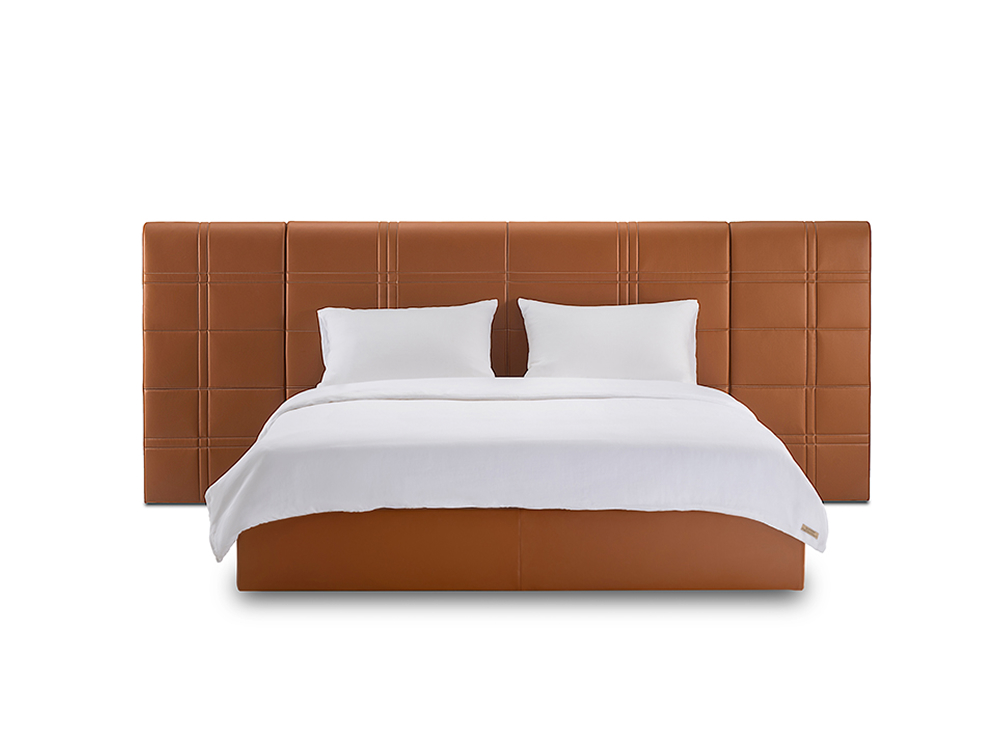 "The bed design has a modular approach to create an individually composition with its back panel.Headboard is softly structured, quilted in check pattern inspired by classic England Haute Couture. HIGH LINE delivers a timeless look for modern home solution."