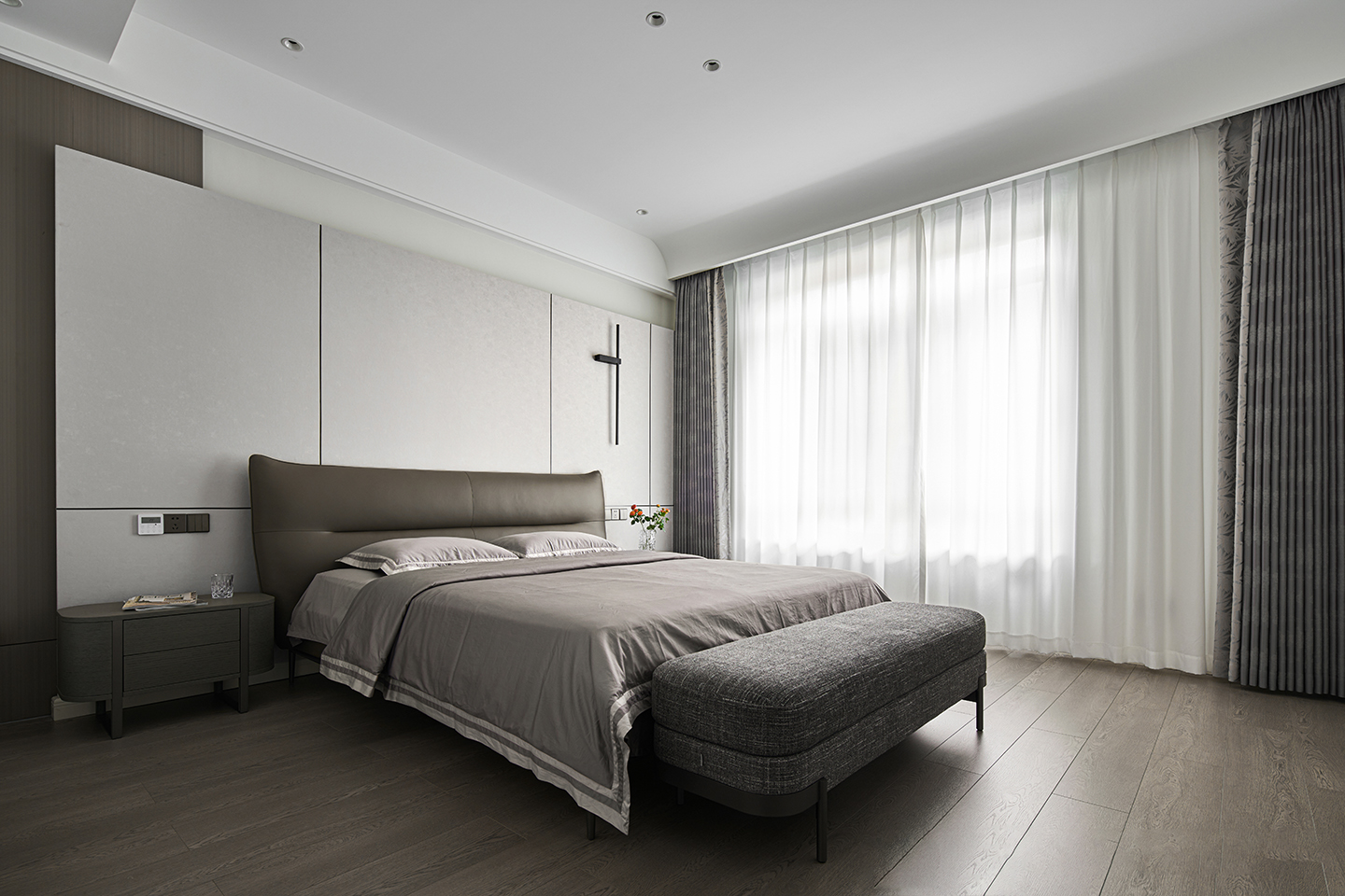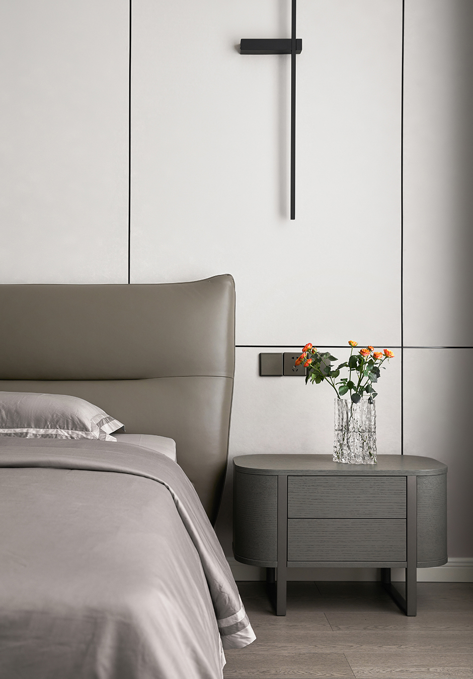 Upholstered with fabric or leather, Metal feet in dark grey epoxy paint finish.