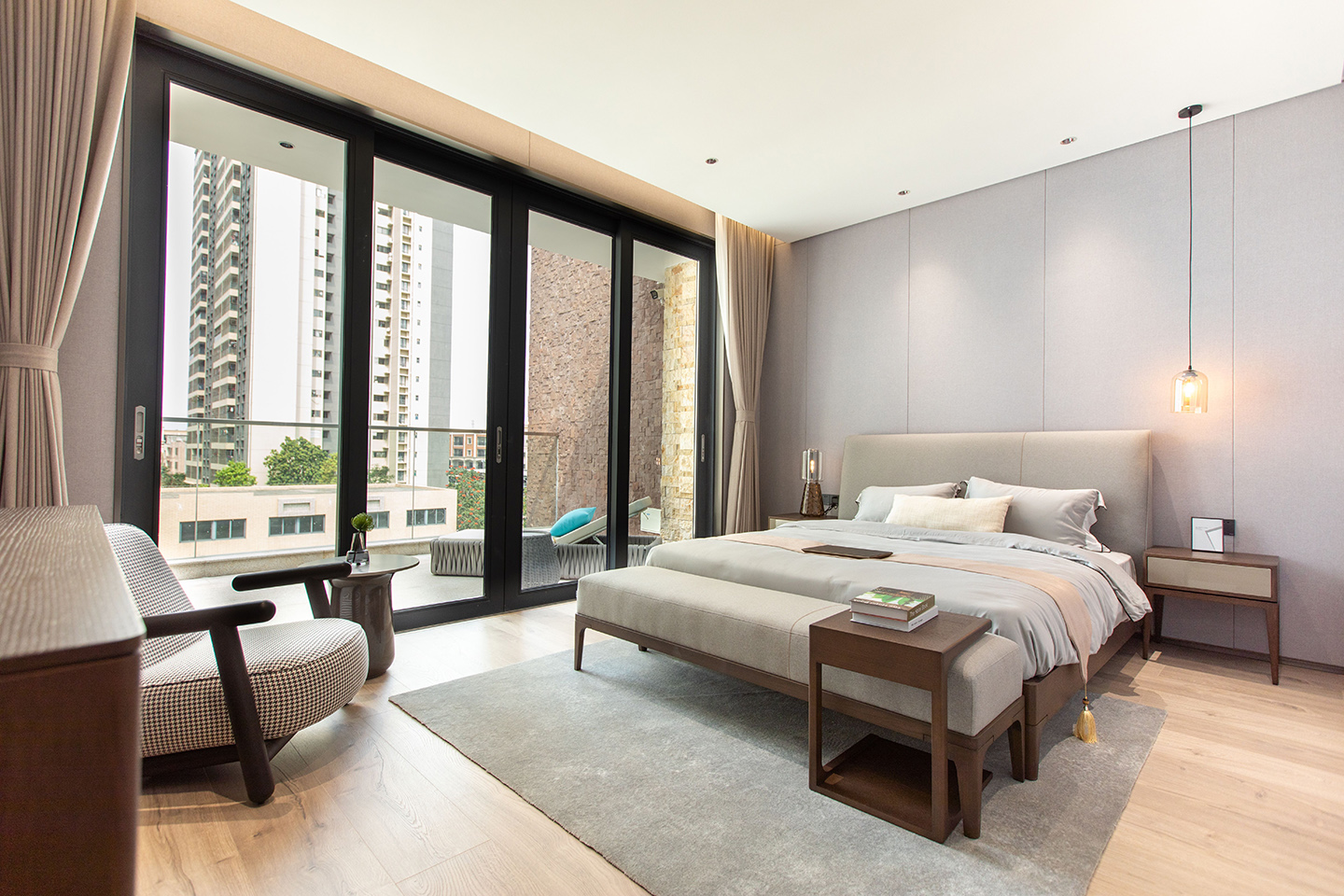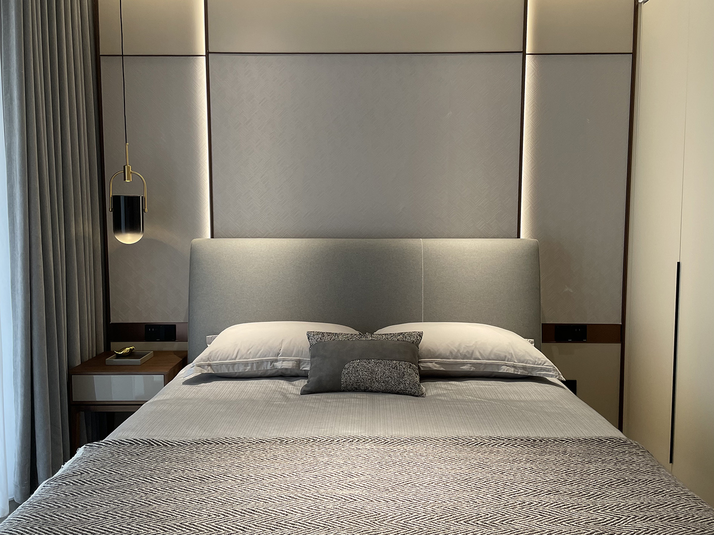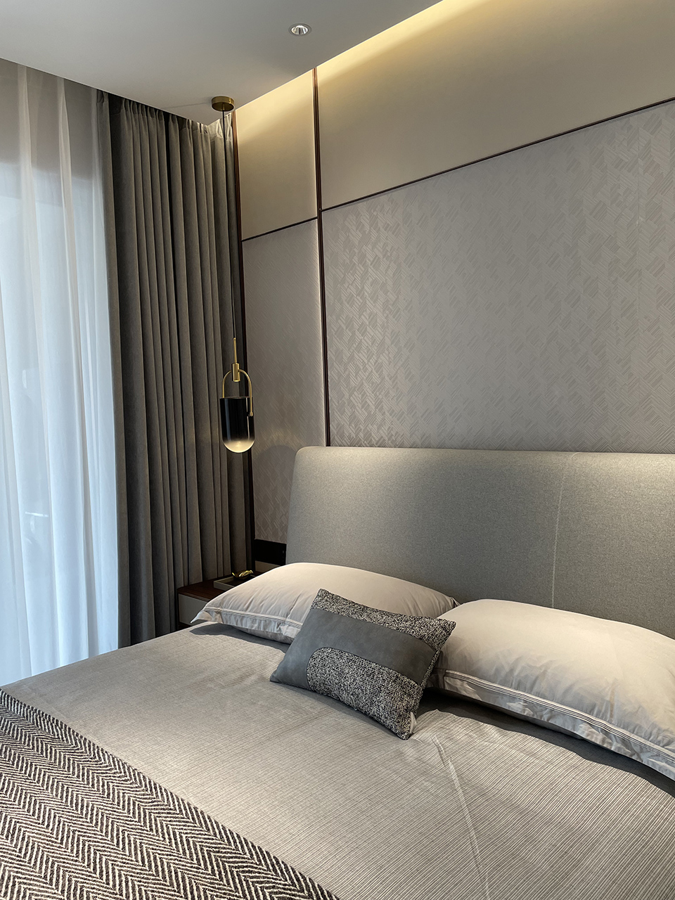The PIANPIAN bed draws from the PIANPIAN identity and superior craftsmanship with its elegant, decorative stitching line on the headboard. The rounded solid wooden base and headboard soften the overall outline of the piece for a comfortable, harmonious, and modern bedroom.