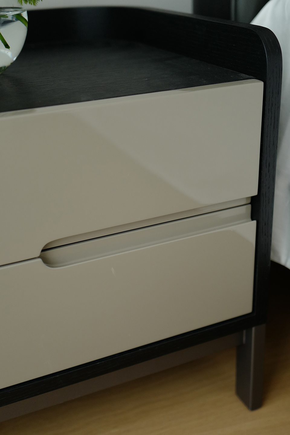 EMMA bedside table offers two drawers and it compliments elegantly EMMA bed. The handle can be offered either on the left or on the right side.