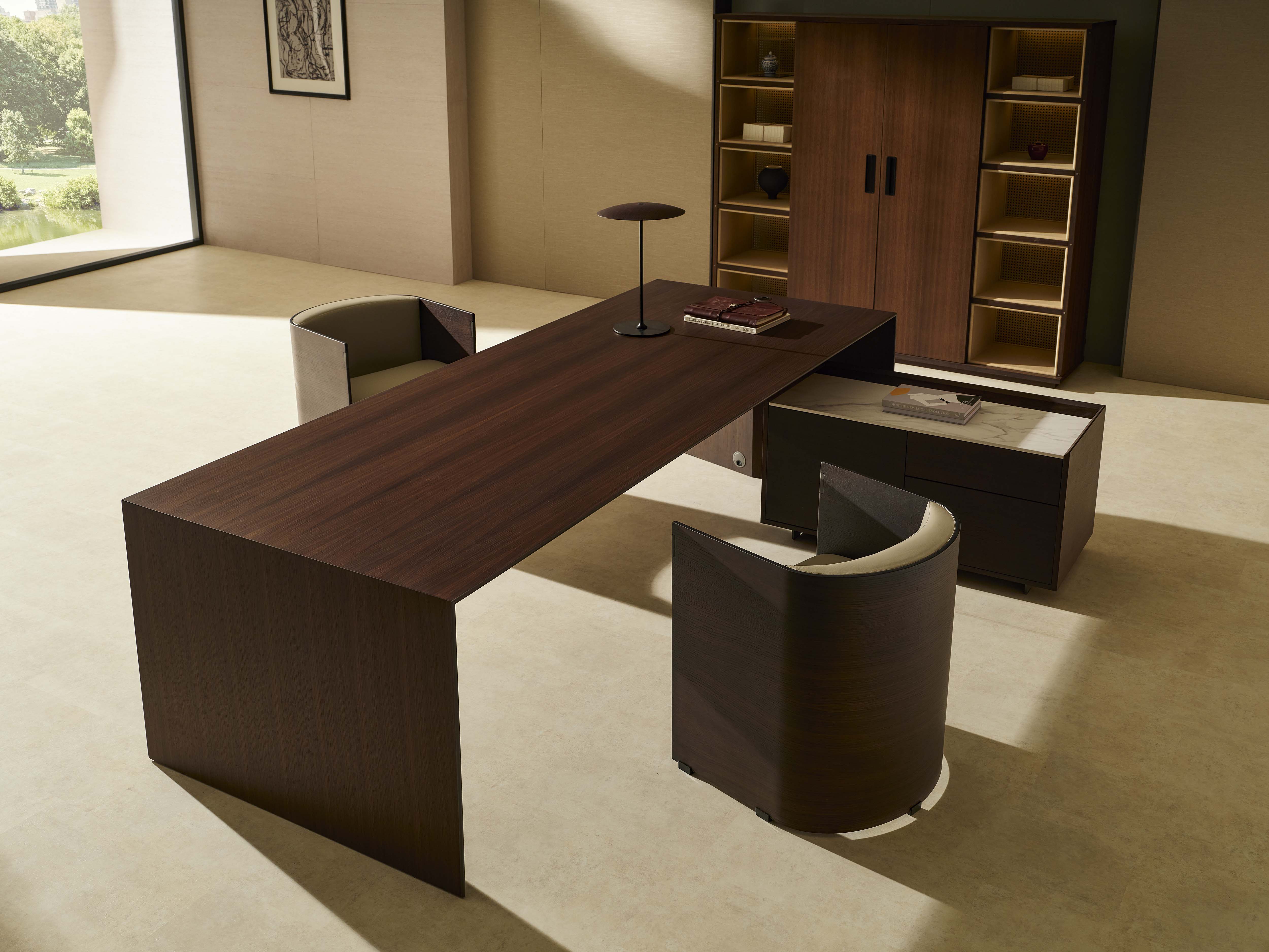 Cabinet is made of wood with sintered stone top, metal feet are in dark grey epoxy paint finish.