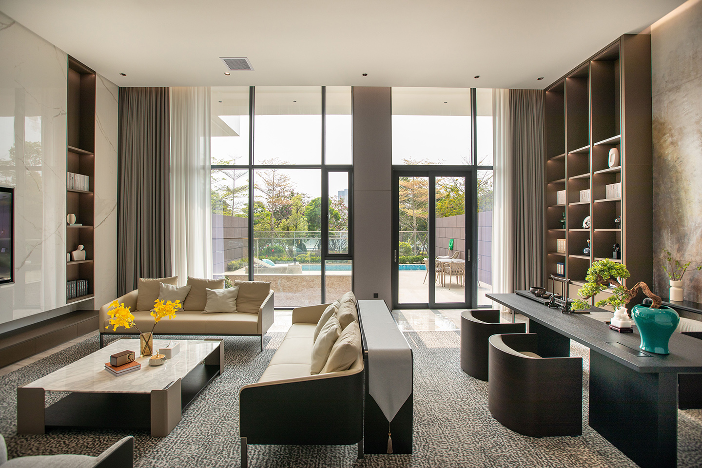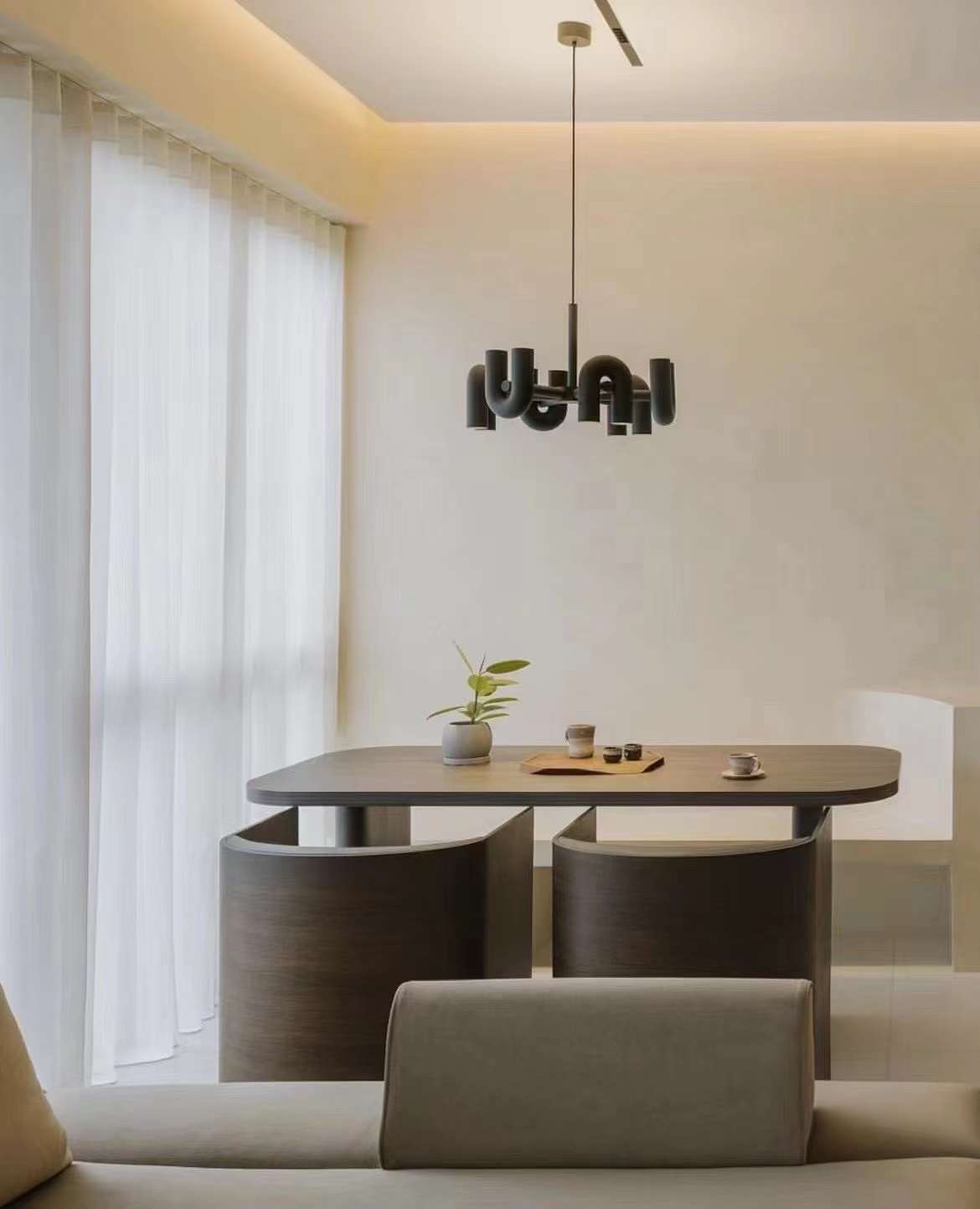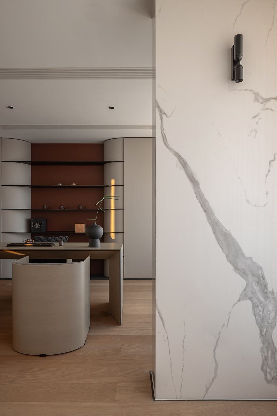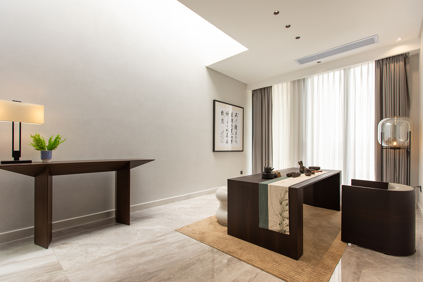 This comfortable chair is named WATER as it recalls the gentle smoothness of water. The master and the guest chair present slightly different appearances, not only to signify the status of their users but also to harmoniously pair with the WIND tea table. The “floating” seat, armrest protection and bended wooden back structure highlight the extreme attention to refined craftsmanship, an essential element of Asian design.