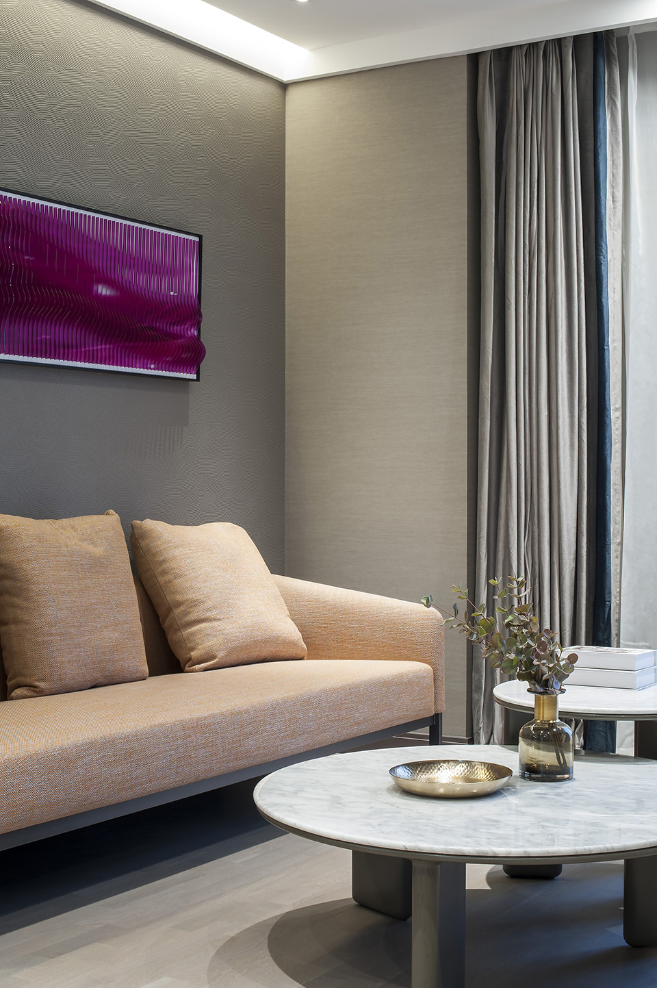 The simple and clean design of EMMA sofa gives a sleek twist to modern simplicity. With its rounded wooden panels surrounding the fully cushioned and upholstered interior, the sofa makes for a comfortable and elegant piece, also ideal for smaller spaces.