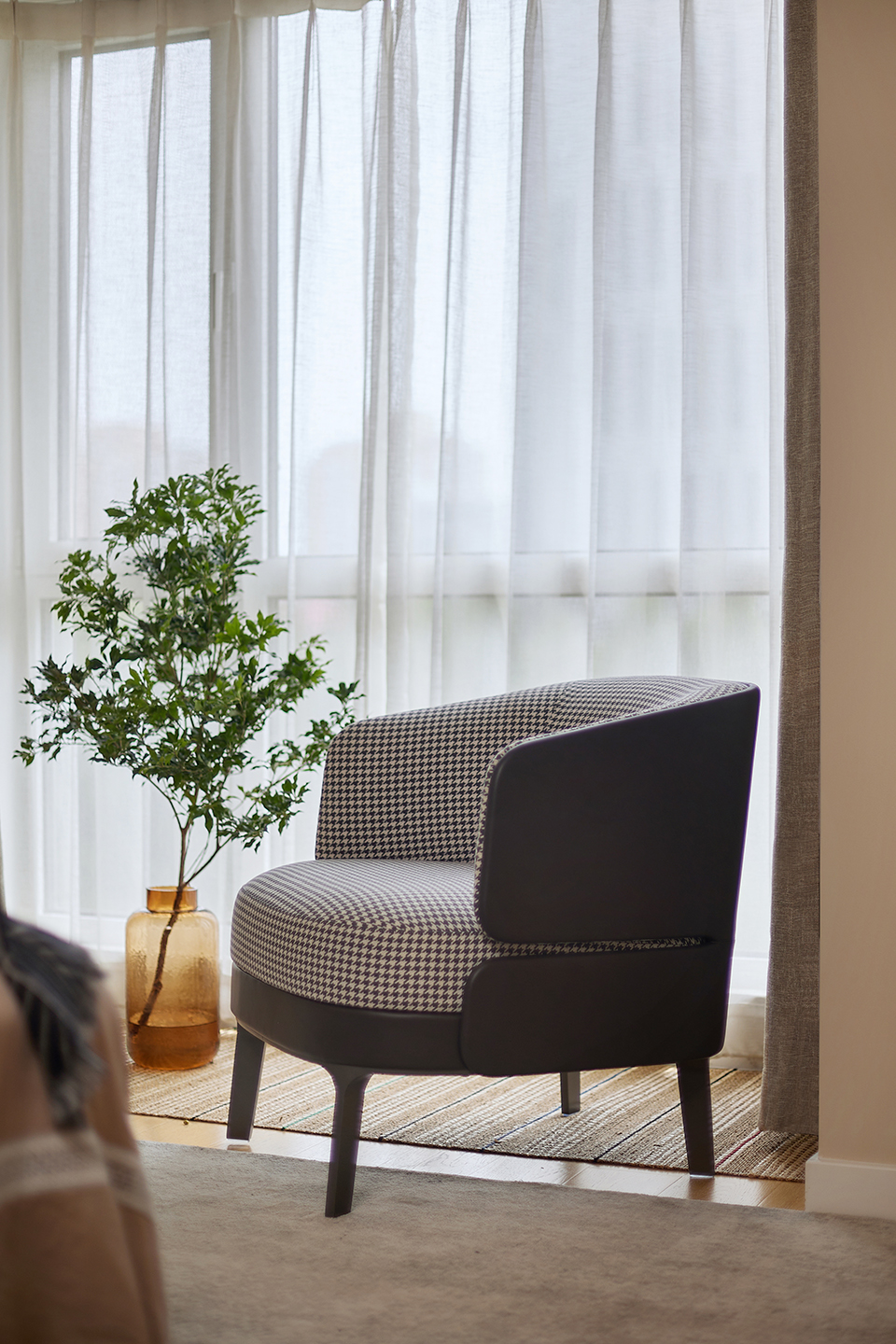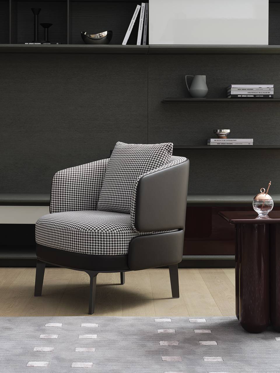 Design and craftsmanship inform the Noa chair. The crispy tailored leather back band over to the side achieves the light and airy aesthetic. With a plush back and roomy seat, Noa armchair invites lounging and save your space.