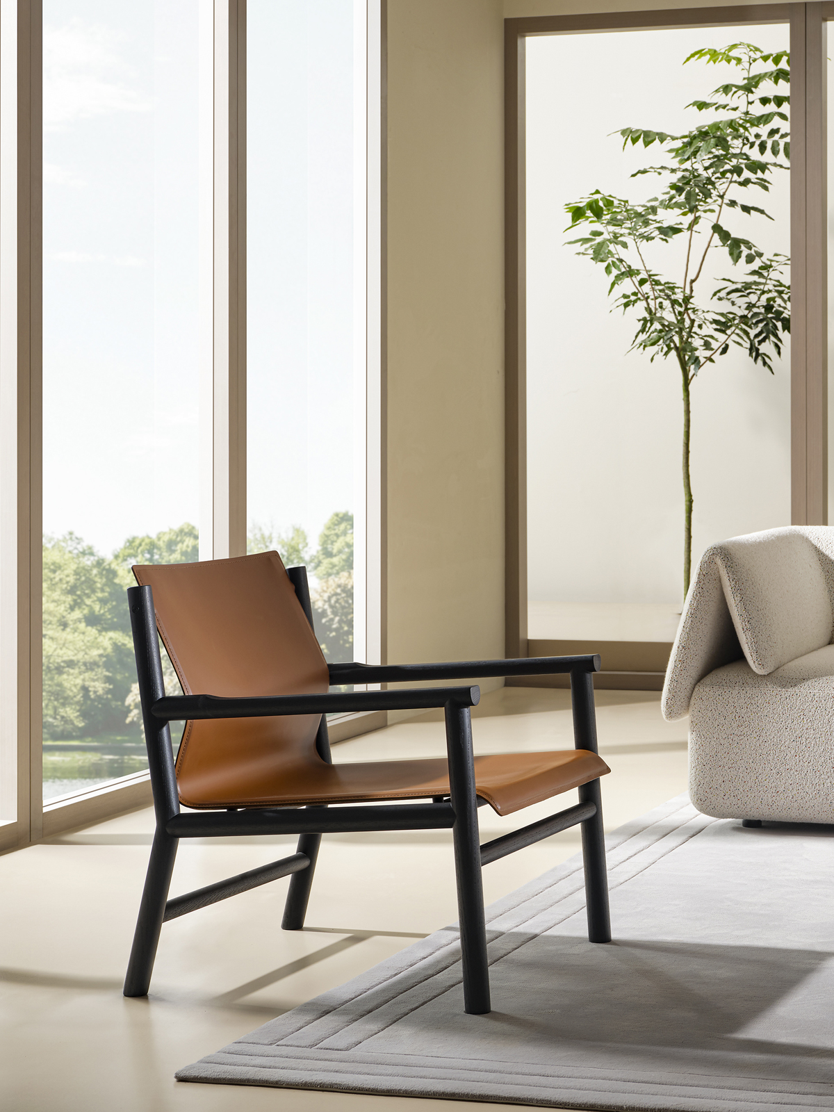 SIO is a classically designed armchair with a modern appeal. The solid-wood frame is made of fine round timber, supporting a visually light saddle leather to create a unique relationship between two materials. Together, SIO armchair radiates a sense of modern romanticism.