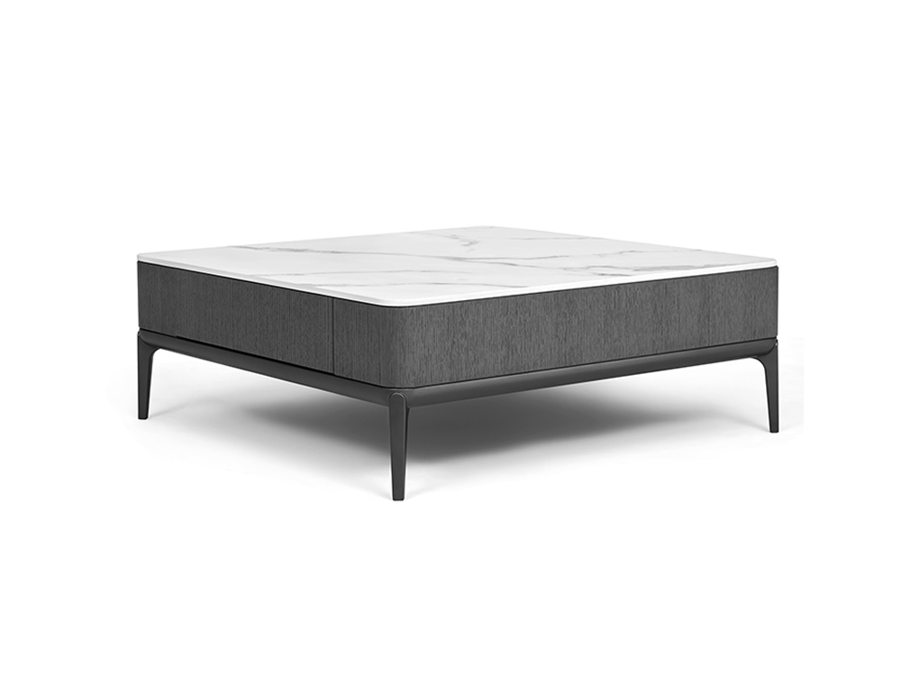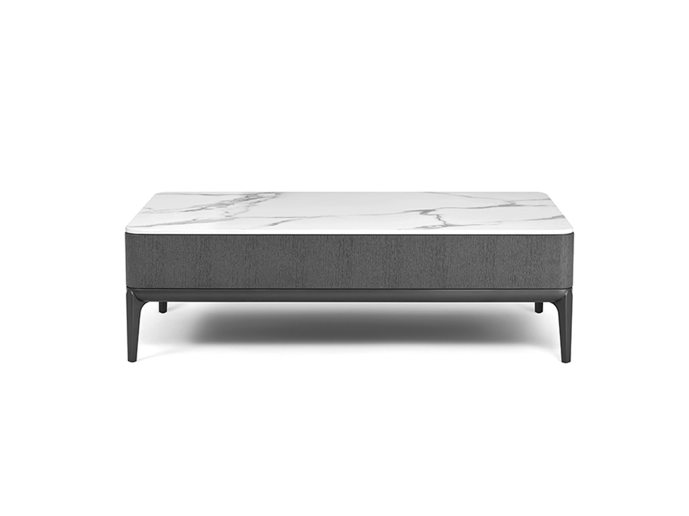 ERIKA collection started with modern minimalism style and finish with the oriental touch. The unique feature of "ERIKA SLIM" is the use of new technologies and materials, representative of high-level industrial design. From this approach comes the versatile corner feet in die-casting aluminum, with a recognizable thin conical shape, which provides the products with elegance, lightness, and a floating sensation. The coffee table in wood or stone top and the drawers that opens from both side to provide storage. The original idea of a simple shape with an unruffled gesture is implemented, with an industrial approach, by creating a consequent and logical set of new product solutions for your living room.