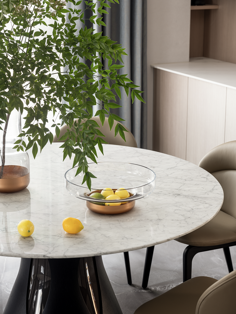 Inspired by flower petals and 3D modeling technology, CLARA table is unique and elegant. The design combines a marble tabletop and an exquisite base in smooth proportions. With its contrasting natural wood and shimmering gloss, CLARA exhibits a form both elegant and organic.